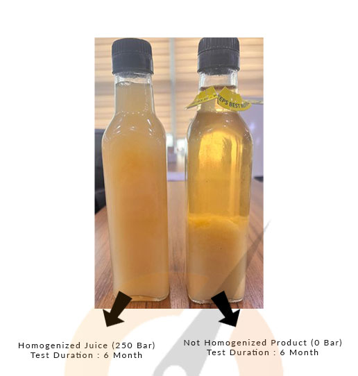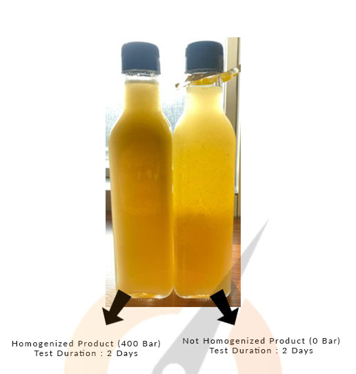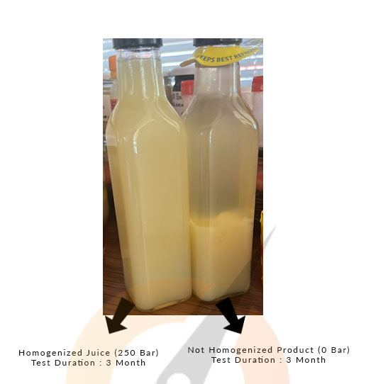 Homojenizatör kullanımı stabilizatör ilavesi olmadan ya da minimal seviyelere indirerek doğal meyve suyu üretimini destekler.